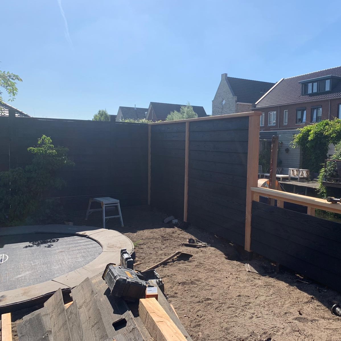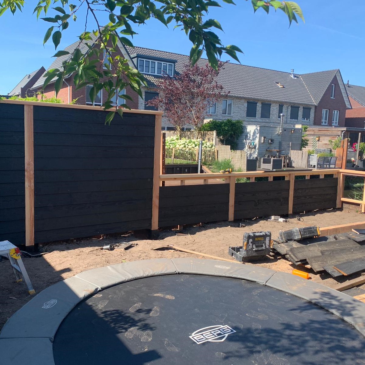 Een zwarte houten schutting zorgt voor een strakke en stoere uitstraling. Daarnaast biedt het de gewenste privacy.